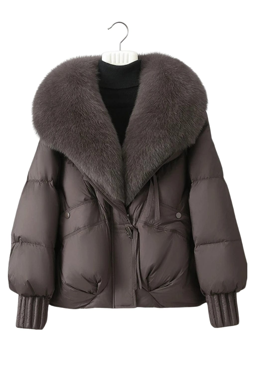 Teinte profonde et caractère mesuré, la doudoune femme fourrure bordeaux combine format court et finitions soignées pour une présence colorée maîtrisée. La bordure en fourrure de renard, assortie de nuances brunes, apporte du relief autour du visage.