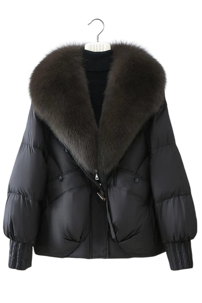 Luxe affirmé, ligne maîtrisée : Doudoune fourrure femme noire